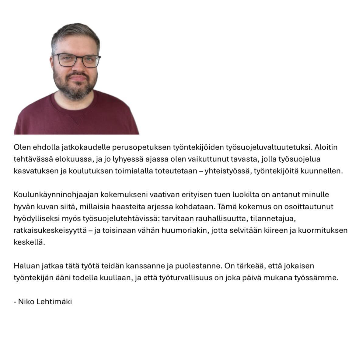 Helsingin opetustoimen henkilöstö JHL ry:n omat ehdokkaat kunta- ja aluevaaleissa ovat Arzu Çaydam-Lehtonen, Jenni Hirvonen, Ville Ohvo ja Anne Tapiovaara.